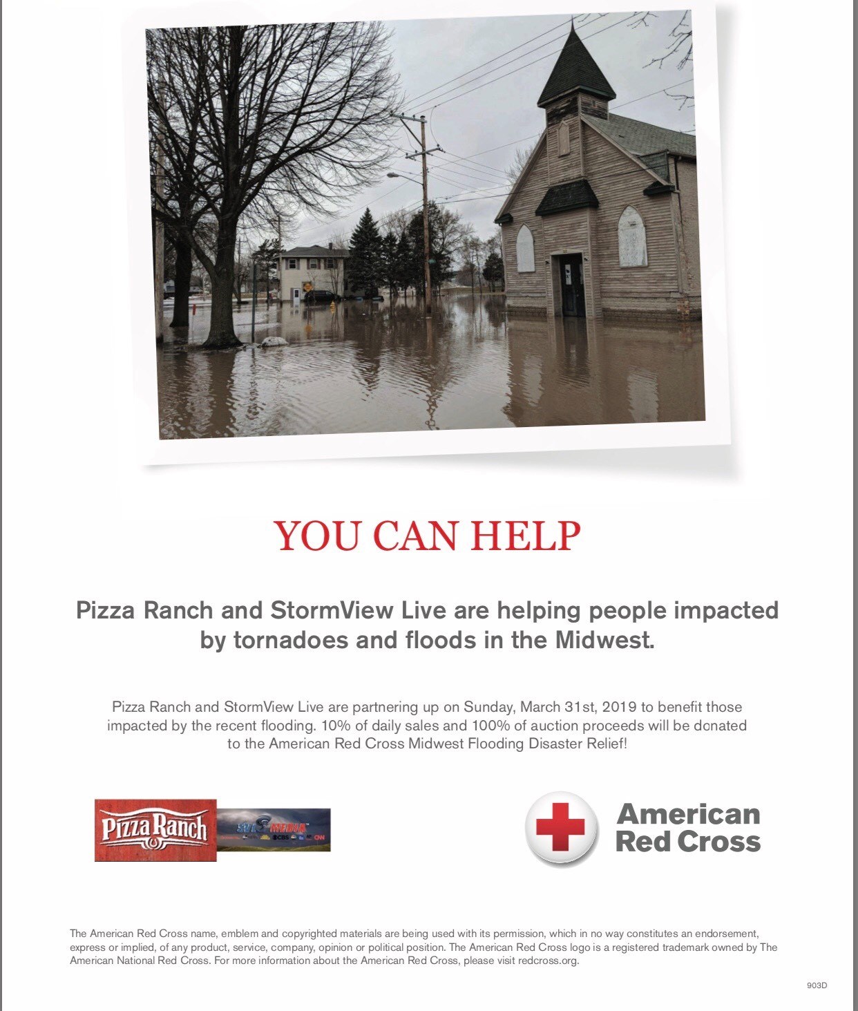 The Council Bluffs Pizza Ranch stepped up for their community on March 31st to raise money for folks affected by the vast flooding this spring. The Pizza Ranch teamed up with the local storm chasers group, StormViewLive to pull off this event.