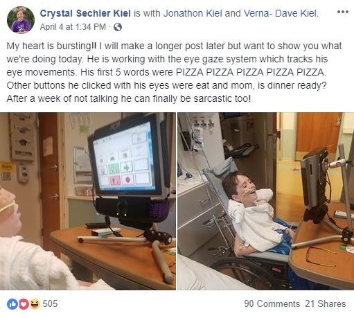 Following the daily updates on Facebook from Emmett’s mom, it has become evident that he is full of smiles and optimism – which you will notice from Crystal’s post. It appears that the road to recovery will be difficult and filled with medical expenses, so community members stepped up and organized a Community Impact night at the Orange City Pizza Ranch for the family on Monday, April 15.
