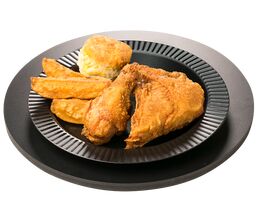 Dinners include choice of side and a biscuit. Additional charge for white meat requests. Choice of sides: Mashed Potatoes & Gravy; Ranch Wedges; Ranch Chips; Waffle Fries; Corn; Green Beans; French Fries. All sides subject to availability.