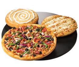 Large Pizza, Small Cheesy Ranch Stix, and Small Cactus Bread OR Chocolate Chip Cookie